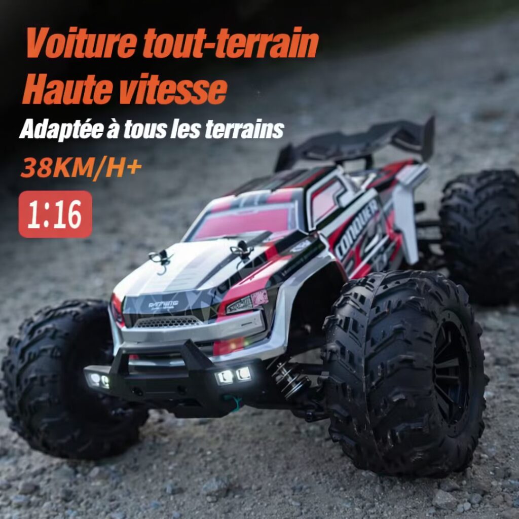 Grâce à sa transmission 4 canaux et sa stabilité optimisée, ce modèle délivre des accélérations franches et un contrôle précis. Ses pneus larges (185 mm de voie) assurent une accroche maximale sur sable, gravier et terrain accidenté.