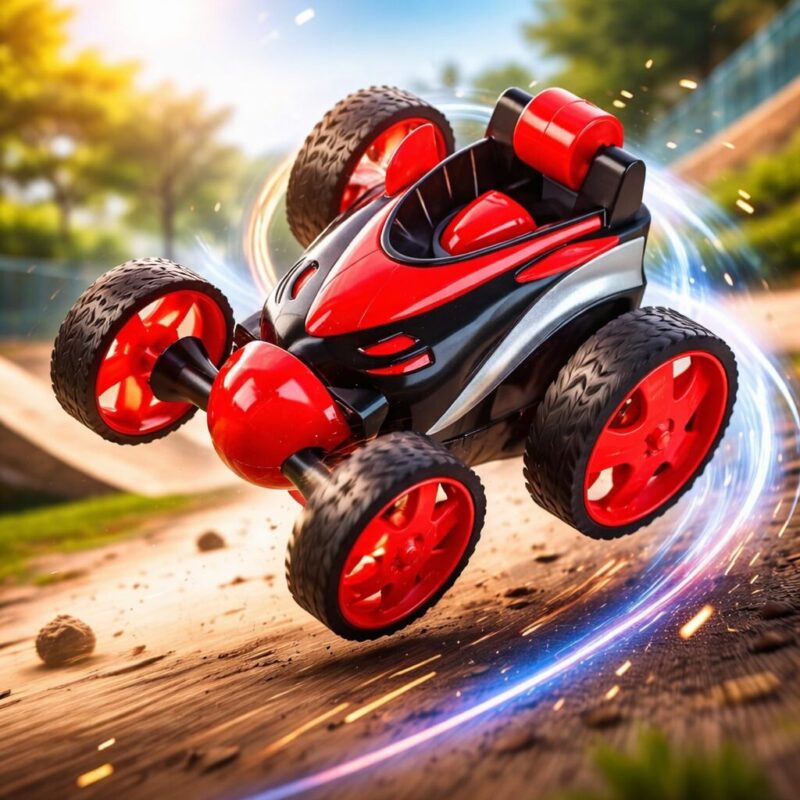 Voiture RC stunt 4 roues conçue pour enchaîner rotations, flips et figures façon breakdance. Fun garanti dès les premières minutes.